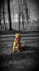 Cole, un Golden Retriever mâle de 4 ans à la robe fauve orangée, est le partenaire idéal. Inscrit au LOF et confirmé, il incarne l'excellence de sa lignée, venant de l'élevage reconnu Du Domaine d'Eily.